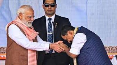 नई दिल्ली। प्रधानमंत्री नरेंद्र मोदी ने दिल्ली में भाजपा स्थित मुख्यालय पर आयोजित राष्ट्रीय अध्यक्ष पद के शपथ समारोह कार्यक्रम के दौरान नए अध्यक्ष नितिन नबीन का अभिवादन किया. इस दौरान...