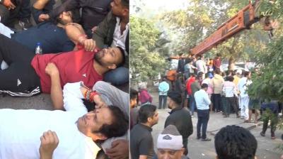 पूर्व विधायक ने सड़क पर लेटकर किया चौपाटी हटाने का विरोध, रायपुर में हंगामा