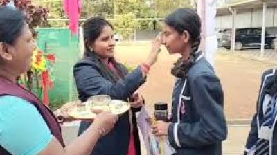 परीक्षा का पहला दिन: परीक्षार्थियों को टीका लगाकर दी गई शुभकामनाएं