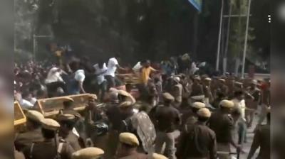 पुलिस से भिड़े कांग्रेसी कार्यकर्ता, धक्का-मुक्की
