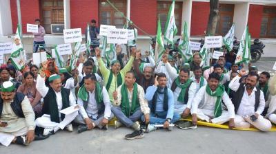 किसानों की मांगों को लेकर विकास भवन पर भाकियू का धरना