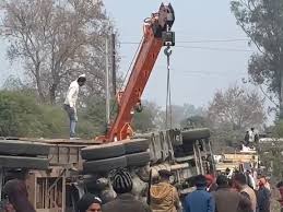 घने कोहरे के कारण बेकाबू हुआ बालू से लदा ट्रक