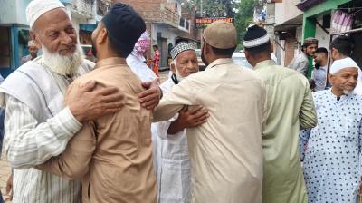 नमाज के बाद लोगों ने एक-दूसरे को गले लगाया