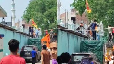 दिल्ली के तुगलकाबाद में तनाव, शोभायात्रा के बीच मस्जिद पर चढ़े युवक